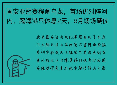 国安亚冠赛程闹乌龙,首场仍对阵河内,踢海港只休息2天,9月场场硬仗